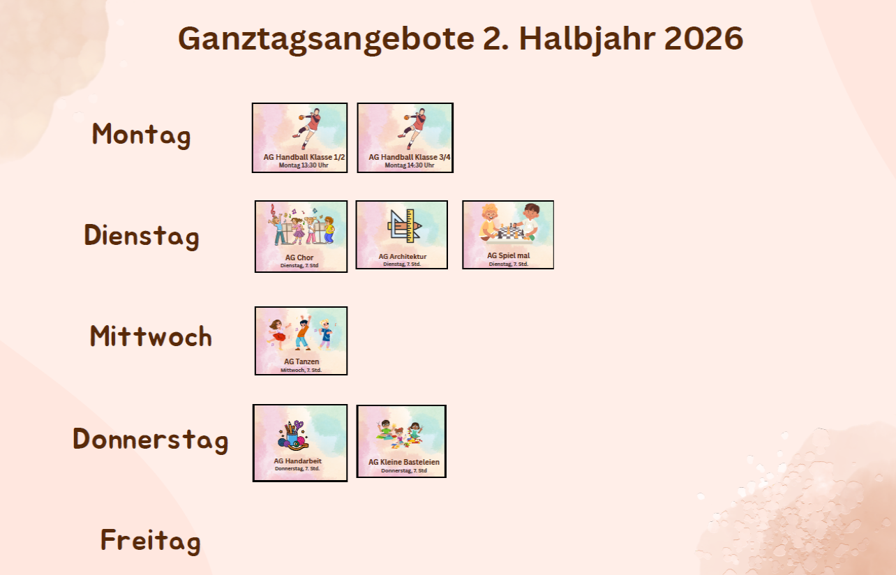 Übersicht unserer Ganztagsangebote im 2. Schulhalbjahr 2025/26
